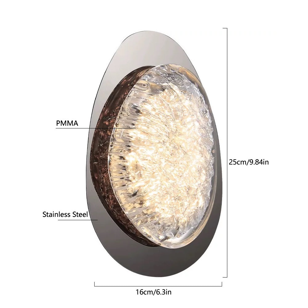 This modern wall lamp showcases an elegant oval silhouette, masterfully crafted from stainless steel and PMMA. The intricately textured PMMA cover acts as a sophisticated light diffuser, casting a warm, inviting glow that transforms any room into a haven of comfort. Whether it's adorning the wall beside your living room sofa, providing ambient light in a bedroom as a bedside fixture, or brightening up a modern hallway, this lamp effortlessly fuses contemporary design with practical functionality. Its durable stainless - steel base not only ensures longevity but also adds a luxurious edge. A must - have for those with an eye for modern aesthetics, it's more than just a lighting solution—it's a statement piece that elevates your home decor.